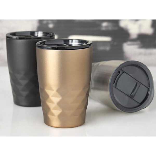 Кружка Geo. Кружка с двойными стенками и вакуумной конструкцией, что позволяет сохранять температуру теплых напитков до 8 часов и холодных до 24 часов. Конструкция предотвращает конденсат снаружи кружки. Легкая задвижка для закрытия отверстия для питья. Широкое отверстие для наполнения. Объем 350 мл. Упакована в коробку. Нержавеющая сталь.Вы можете купить по низким ценам кружку Geo, белый/черную с нанесением прямо сейчас, оформив доставку курьером