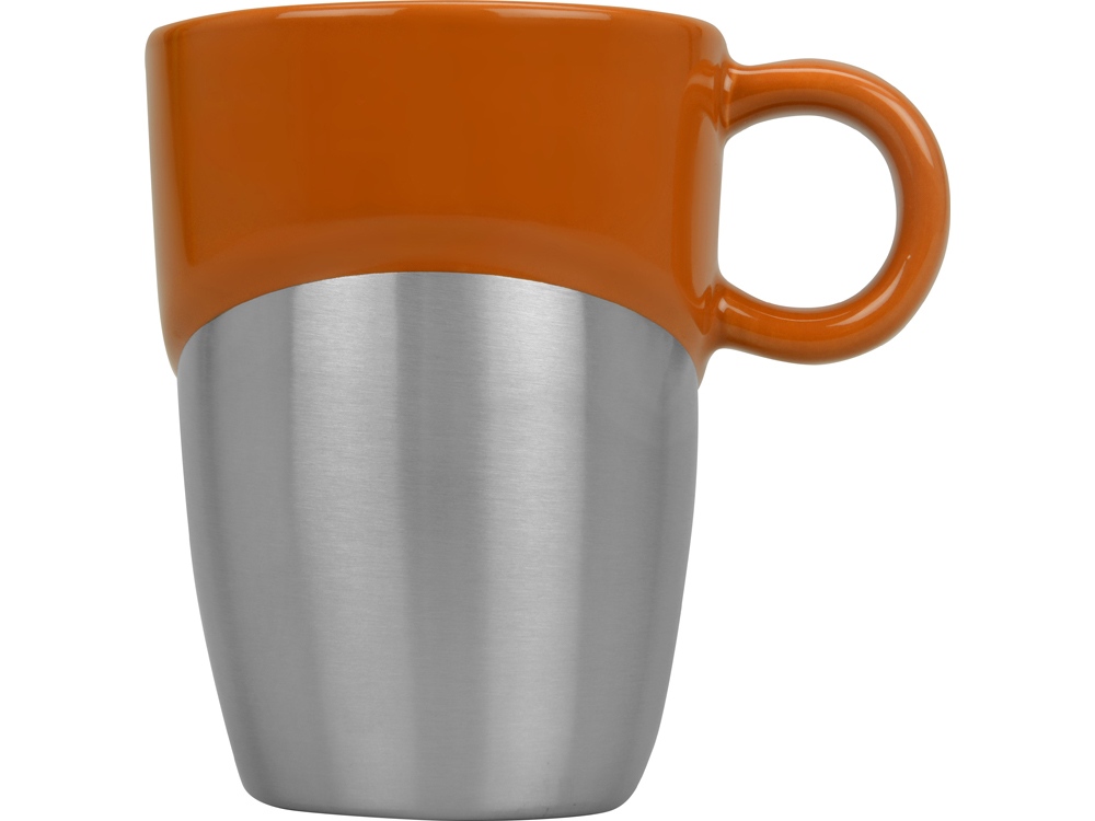 Оригинальная кружка. В дизайне использовано сочетание керамики и нержавеющей стали – она точно запомнится и будет отличаться от других офисных кружек. Большой объем – 300 мл. Разные варианты расцветки. Возможно нанесение гравировки или тампопечати.Вы можете купить по низким ценам кружку с металлической вставкой, 300 мл с нанесением прямо сейчас, заказав быструю доставку