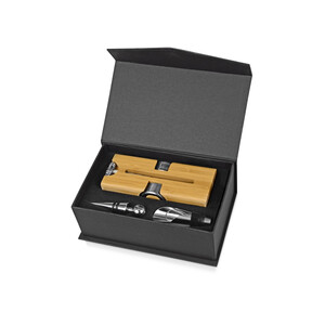 Стильный набор аксессуаров для вина на деревянной подставке поможет легко открыть бутылку и аккуратно разлить напиток при помощи штопора-открывалки, устройства для разлива вина и двух воротничков на бутылку. В набор также входят пробка для бутылки и термометр. Оригинальная деревянная подставка будет красиво смотреться на столе.Вы можете купить по низким ценам набор аксессуаров для вина «Фаренгейт» с вашим логотипом прямо сейчас, оформив доставку курьером