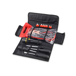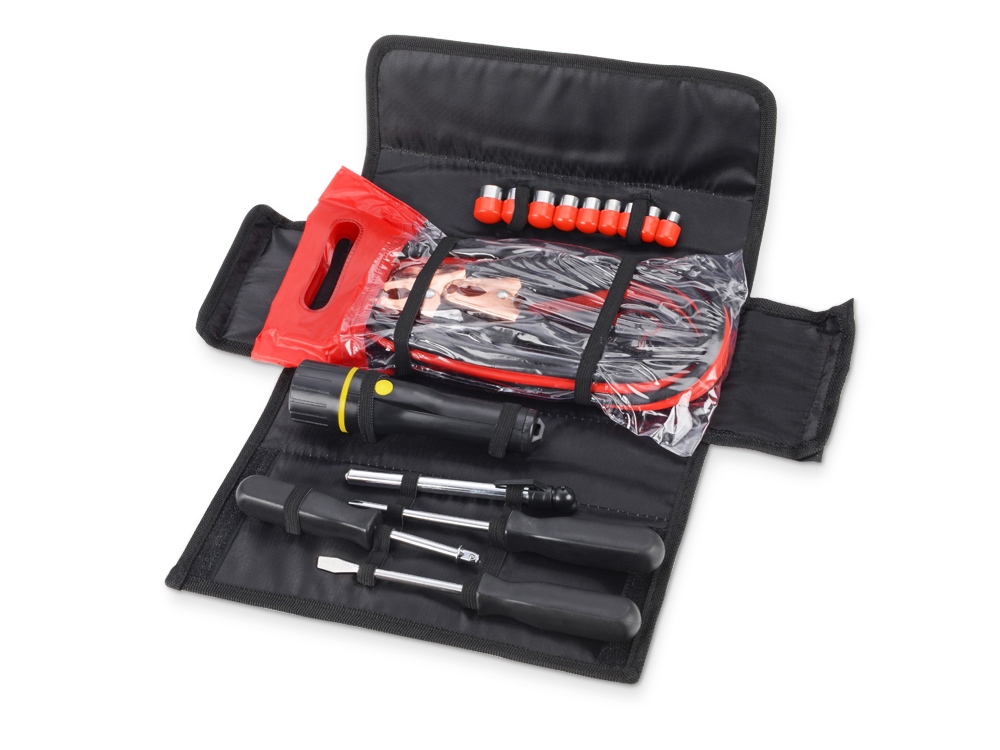 Очень полезный набор различных автомобильных «нужностей» в удобном кейсе. В комплект входит набор необходимых инструментов, фонарик, а также приспособление для «прикуривания» аккумулятора.Вы можете купить из наличия набор "Автопрофи", чёрный с нанесением прямо сейчас, оформив быструю доставку