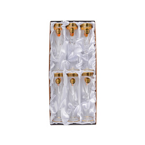 Оригинальный набор бокалов для шампанского, задекорированных золотистым изображением царя зверей – могучего льва. Бокалы выполнены из прозрачного хрусталя с золотистой отделкой по краю и на ножке. Набор рассчитан на 6 персон.