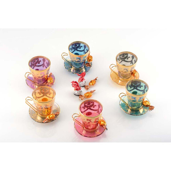 Прекрасный способ украсить обычное чаепитие! Набор для чая, рассчитанный на 6 персон, включает в себя разноцветные чашки и блюдца из стекла. На поверхность чашек и блюдец нанесен золотистый узор.Вы можете купить из наличия набор для чая «Вечер на вилле» с нанесением прямо сейчас, купив быструю доставку
