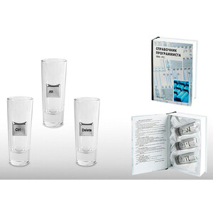 Набор из 3-х стопок с оловянными барельефами "Компьютерные клавиши Ctrl+Alt+Del"Вы можете купить из наличия набор для водки «Справочник программиста» с вашим логотипом прямо сейчас, купив быструю доставку