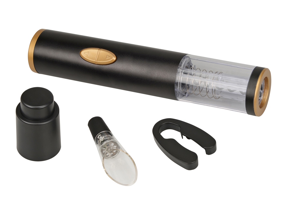 Необычный и практичный подарок для успешных мужчин. Набор аксессуаров для вина включает в себя автоматический штопор, нож для фольги, воронку для розлива и пробку, упакованные в компактный футляр-кейс.Вы можете купить по низким ценам набор "Открытие": штопор, аксессуары для вина с вашим логотипом прямо сейчас, оформив быструю доставку