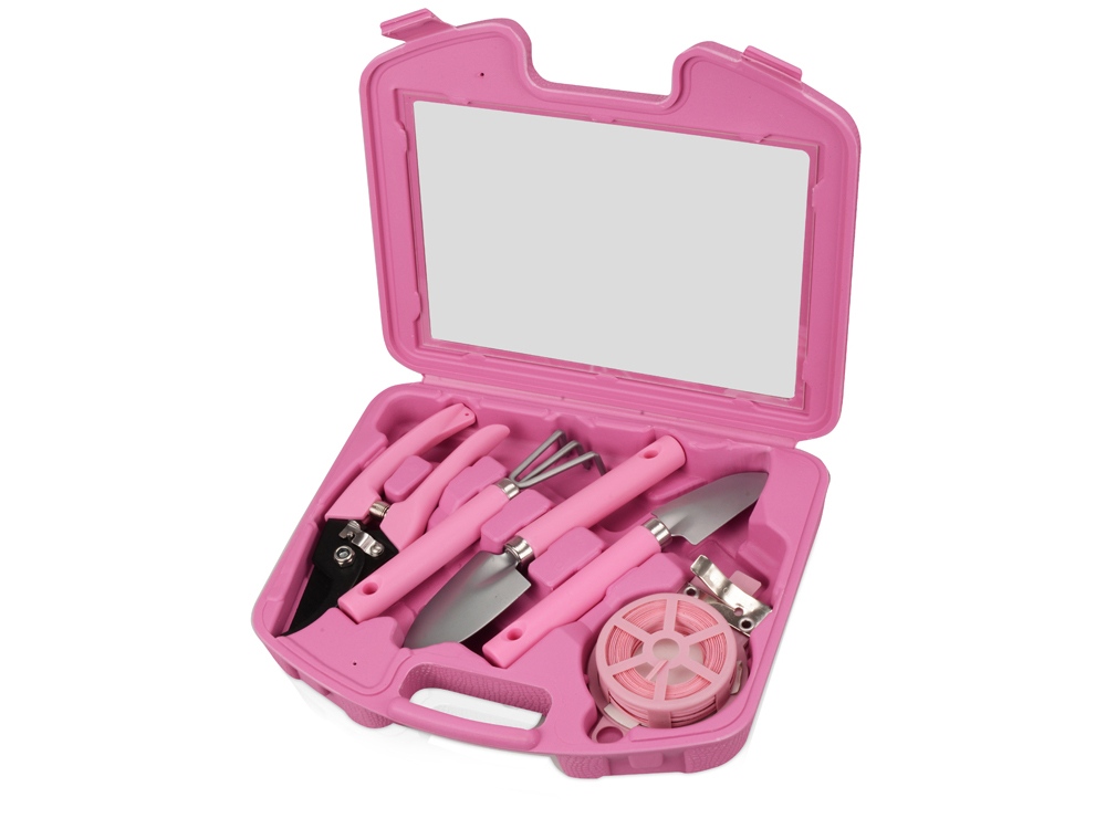 Набор садовых инструментов в розовом кейсе отлично подойдет для женщин, увлекающихся комнатными и садовыми растениями. Инструменты компактно умещаются в кейсе и всегда хранятся в одном месте.