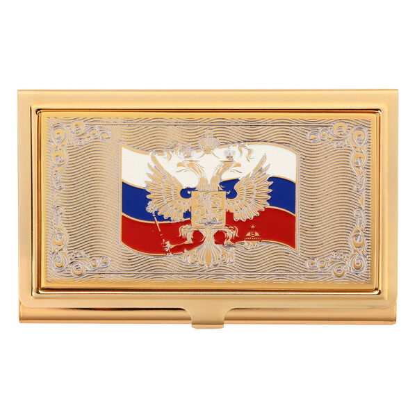 Набор, состоящий из визитницы и металлической закладки для книг в эффектной коробке, станет прекрасным подарком для руководителей, топ-менеджеров и ключевых клиентов. На позолоченной визитнице и закладке изображена российская государственная символика.