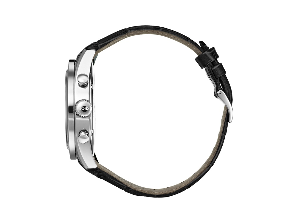 Кварцевый хронограф (дата, часы, минуты, секунды, 24-часовая шкала), тахиметр, минеральное стекло, корпус из нержавеющей стали (316L), D=44 мм, толщина корпуса 12 мм, черный ремешок из натуральной кожи "под крокодила", WR 50м.Вы можете купить из наличия наручные часы HUGO BOSS из коллекции Trophy с вашим логотипом прямо сейчас, заказав доставку курьером