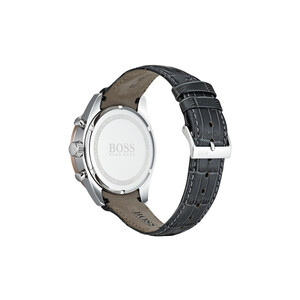 Кварцевый хронограф (дата, часы, минуты, секунды, 24-часовая шкала), тахиметр, минеральное стекло, корпус из нержавеющей стали (316L), D=44 мм, толщина корпуса 12 мм, серый ремешок из натуральной кожи "под крокодила", WR 50м.Вы можете купить из наличия наручные часы HUGO BOSS из коллекции Trophy с нанесением прямо сейчас, купив доставку курьером