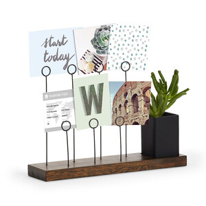 Оригинальное панно для фотографий, которые крепятся на семи разноуровневых металлических зажимах в виде колец. Зажимы встроены в основание из натурального дерева. В комплект также входит съемное керамическое кашпо для комнатного растения, свежесрезанного цветка или канцелярских принадлежностей. Размер кашпо 10х5 см Дизайнер Sung wook ParkВы можете купить по низким ценам Панно для фотографий gala состаренный орех с нанесением прямо сейчас, заказав быструю доставку