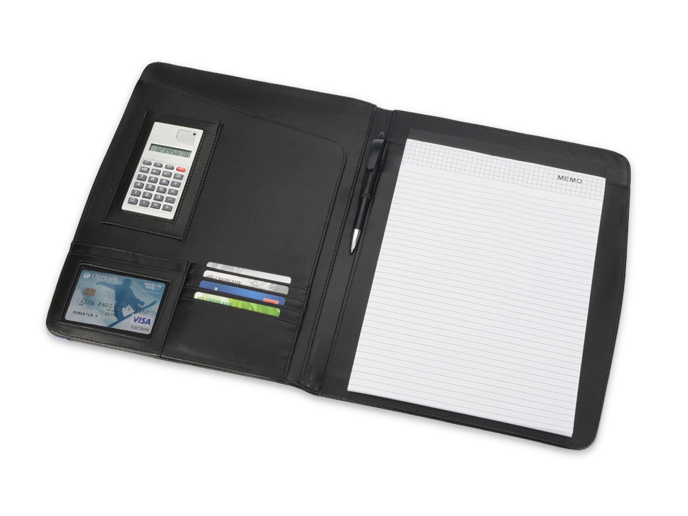Стильная папка для документов Guidon – прекрасный подарок для делового человека. Папка формата А4 со сменным блокнотом и встроенным калькулятором. Сделана из искусственной кожи, особенно стильный вид ей придает цветная отделка внутри и снаружи. На лицевую сторону можно сделать нанесение шильда или тиснение.
