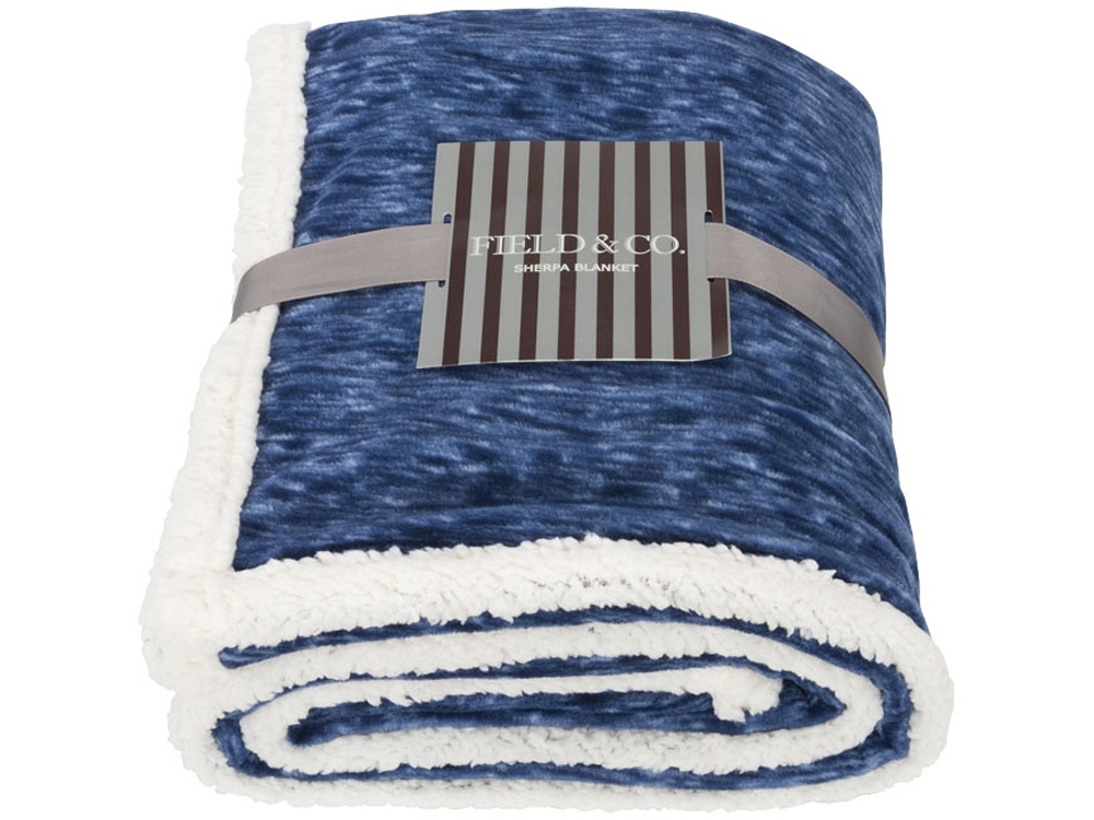 Плед из шерпы Sam. Плед Field & Co.® отличается классическим дизайном с современными нотками. Супермягкий и уютный, дарит идеальный комфорт. С подкладкой из мягкого велюра и шерпы с логотипом Field & Co.®. Поларфлис 200 г/м² и шерпа-флис 180 г/м².Вы можете купить из наличия Плед из шерпов Sam, тёмно-синих с нанесением прямо сейчас, купив доставку курьером