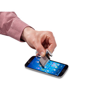 Подставка-брелок для мобильного телефона с губкой для чистки экрана. Функциональный промо-сувенир для продвижения цифровых устройств с сенсорным экраном: мобильных телефонов, планшетов, фотоаппаратов и т.д. Различные расцветки. Возможно нанесение изображения по вашему эскизу.Вы можете купить по низким ценам подставку-брелок для мобильного телефона "GoGo", серебристый/белую с вашим логотипом прямо сейчас, купив быструю доставку