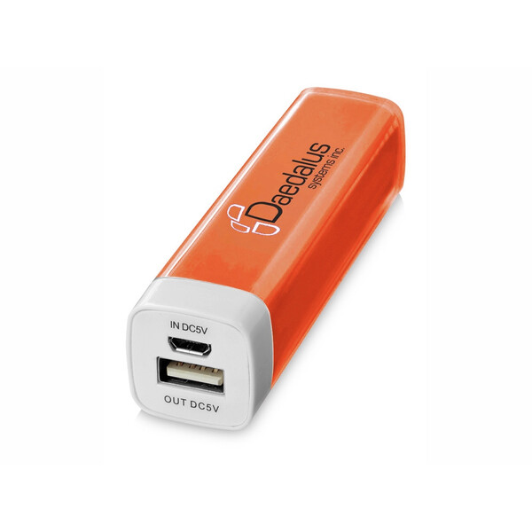 Зарядное устройство емкостью 2200 мА/ч для эффективной зарядки мобильного устройства. Зарядное устройство заряжается в течение 2 часов, включает кабель USB и индикатор. Красный свет обозначает процесс зарядки, синий свет – полную разрядку, а когда устройство заряжено, индикатор гаснет.Вы можете купить из наличия портативное зарядное устройство "Flash" 2200 мА/ч, оранжевое с вашим логотипом прямо сейчас, заказав быструю доставку