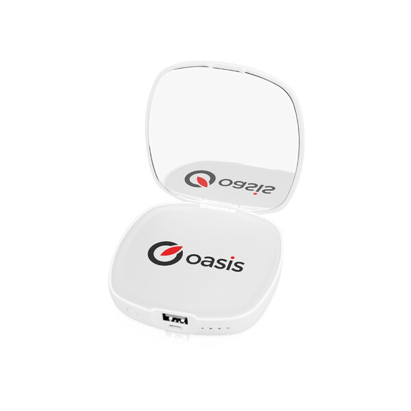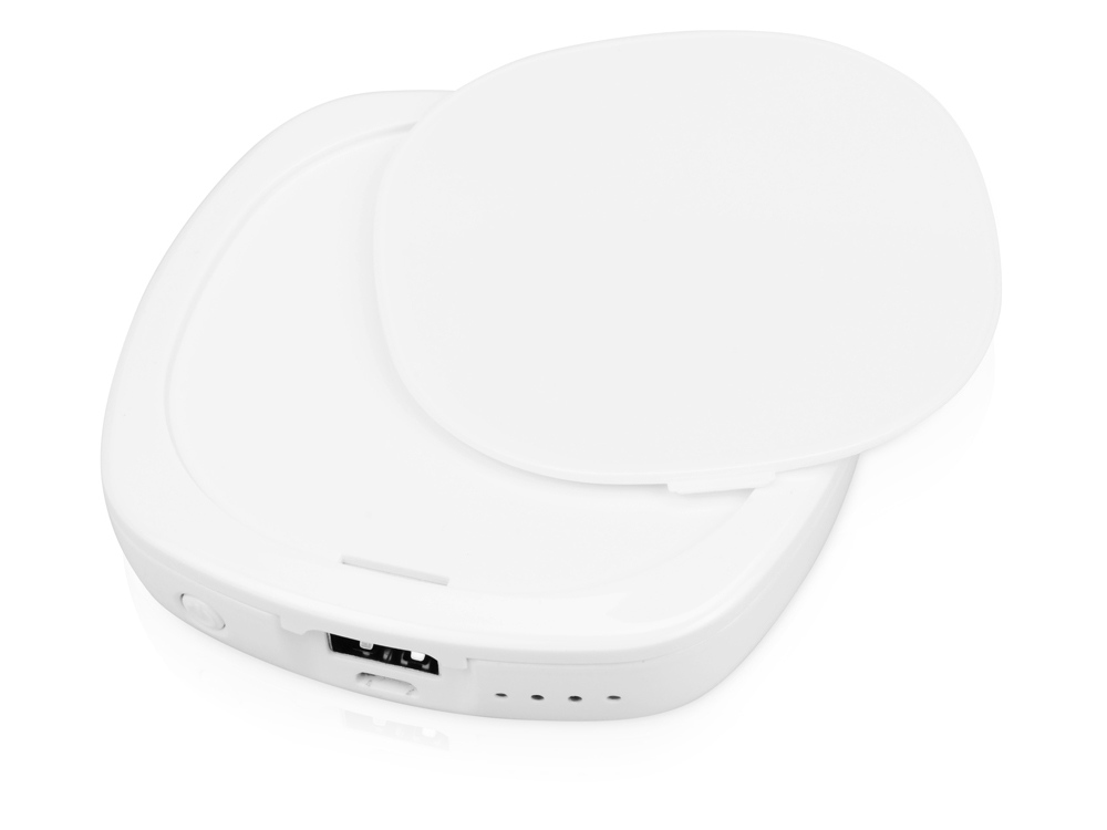 Портативное зарядное устройство с оригинальным дизайном в виде складного зеркальца поможет всегда оставаться на связи и отлично выглядеть. Сложно предсказать, когда сядет батарея смартфона или потребуется поправить макияж, а пауэрбэнк с зеркальцем решает обе эти проблемы. Большая емкость аккумулятора (4000 mAh) благодаря выходу 2.1А позволит быстро полностью зарядить смартфон или поддержать работоспособность планшета. Пауэрбэнк-зеркальце сделан из качественного ABS-пластика, снабжен светодиодным индикатором заряда и имеет компактный размер, чтобы поместиться в любую сумочку. Кроме того он обладает большим пространством для персонализации и может стать отличным подарком для современной женщины. Обратите внимание! Портативное зарядное устройство «Рефлект» специально разработано для нанесения, поэтому оно поставляется со снятой дополнительной деталью крышки. Эта деталь нужна, чтобы закрыть выемку, предусмотренную для нанесения с помощью эпоксидной смолы. В случае заказа нанесения смолой на нашем производстве, дополнительная деталь вам не потребуется. Если же нанесение смолы не предполагается, а персонализация будет осуществляться силами клиента, то деталь крышки нужно будет закрепить на устройстве. Сделать это очень просто: на обратной стороне детали вы найдете клейкую ленту. Чтобы закрепить деталь, нужно снять с клейкой ленты защитный слой, вставить ее на место и прижать к устройству.Вы можете купить по низким ценам портативное зарядное устройство на 4000 mAh с зеркалом с вашим логотипом прямо сейчас, заказав доставку курьером