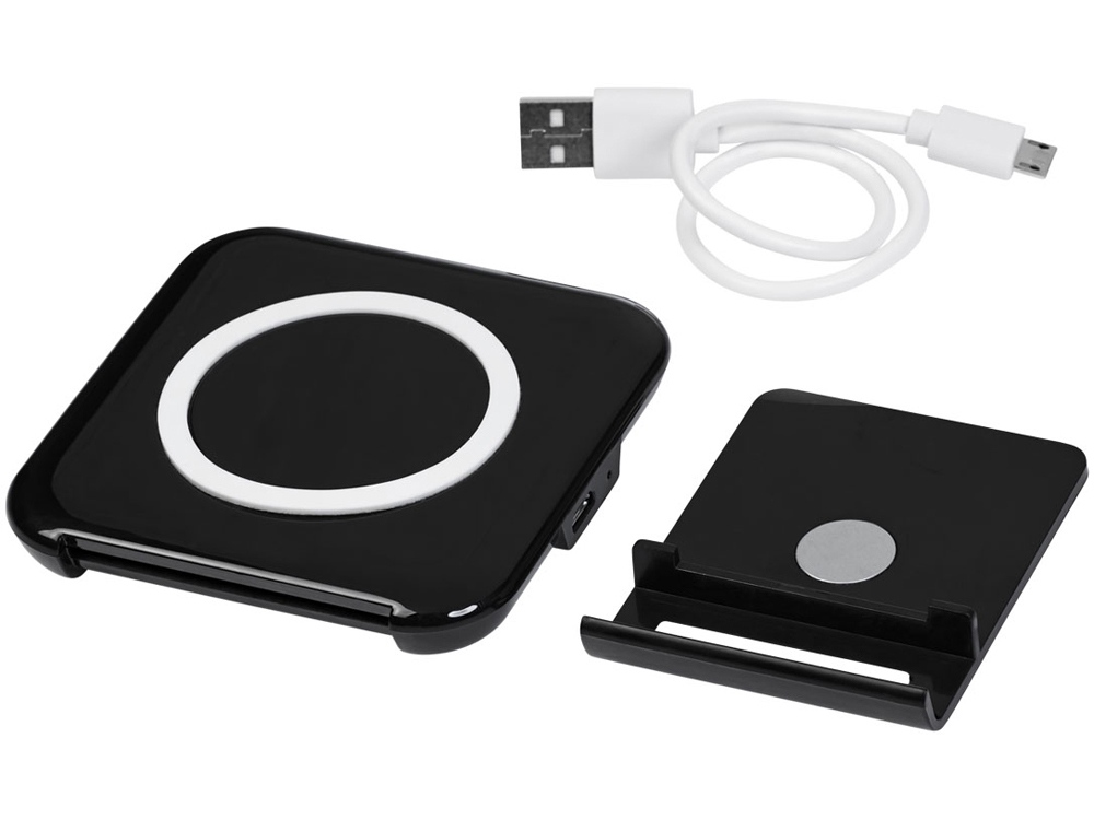 Беспроводная зарядная подставка для телефона Catena. Беспроводная зарядная подставка Catena для зарядки смартфона. Просто положите смартфон на подставку, и он автоматически начнет заряжаться. АБС-пластик.Вы можете купить из наличия портативную зарядную устройство-подставку для смартфона «Catena», чёрную с вашим логотипом прямо сейчас, купив доставку курьером