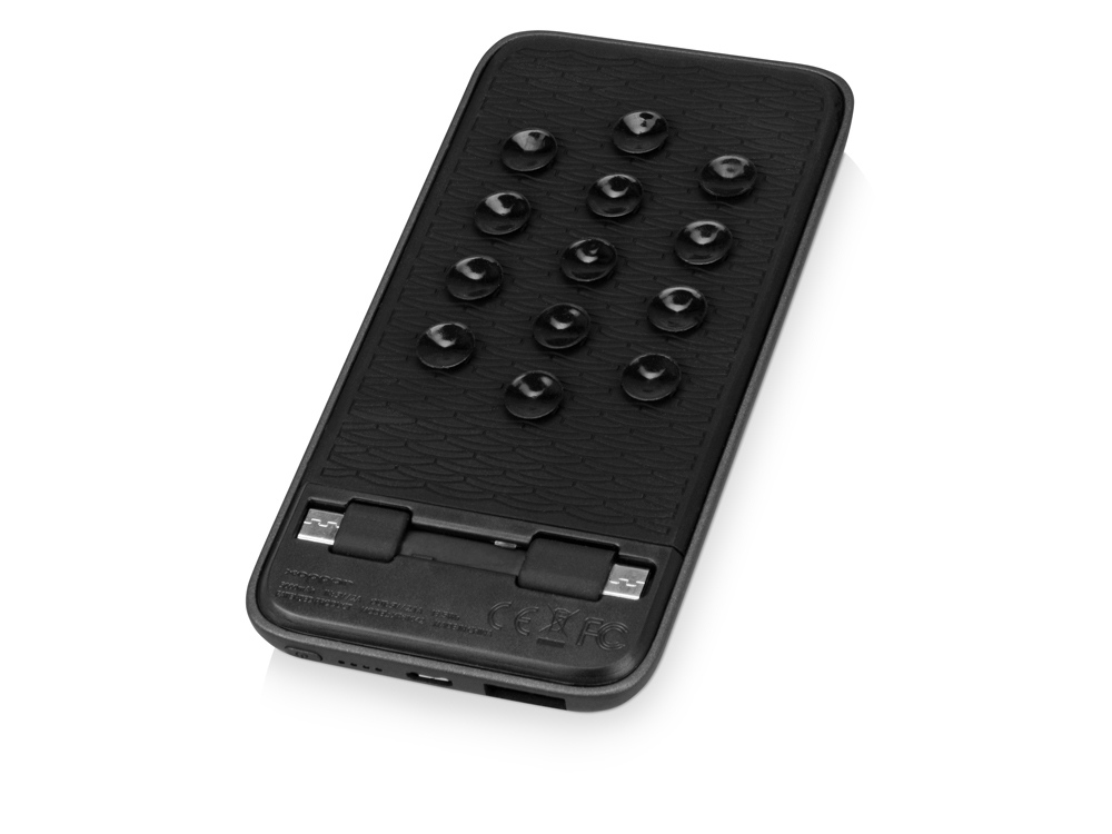Портативное зарядное устройство для смартфона, планшета или другого устройства с возможностью зарядки от USB. Сила тока аккумулятора 2.1А, она позволяет быстрее зарядить любимый гаджет. Объем внешнего аккумулятора 5000 mAh – этого хватит для 2 зарядок iPhone 7. Отличительная особенность этого портативного зарядного устройства – наличие присосок на одной из сторон корпуса, они позволяют надежно закрепить ваш гаджет на корпусе устройства и продолжать им пользоваться даже во время зарядки. Внешний аккумулятор снабжен компактным коротким проводом с разъемами usb-micro и Lightning, для которого есть специальное углубление на корпусе. Литий-полимерный аккумулятор эффективно сохраняет заряд, а также безопасен в использовании. На корпус зарядного устройства можно нанести гравировку, которая будет вскрываться при помощи подсветки. Всего доступно пять цветов подсветки: красный, желтый, зеленый, синий, белый.Вы можете купить по низким ценам портативное зарядное устройство XOOPAR BUBBLE BANG, 5 цветов подсветки, 5000 mAh, мокрое асфальт с вашим логотипом прямо сейчас, купив доставку курьером