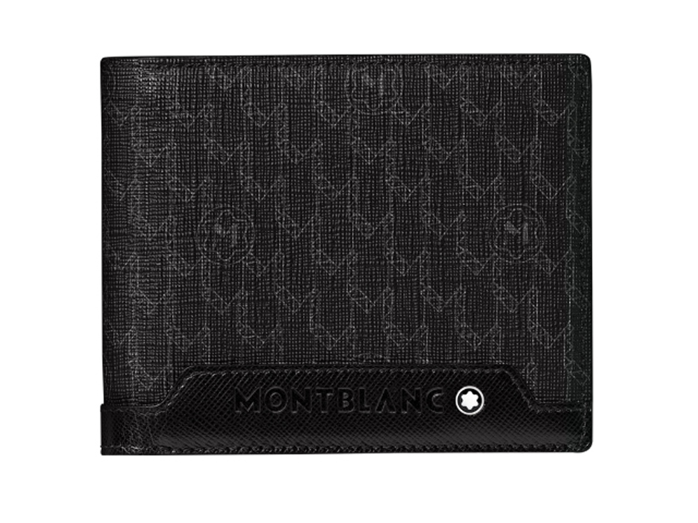 Портмоне Montblanc, компактный горизонтальный формат, оснащено 2 прозрачными отделения, изготовлено из высокопрочной ткани с PVC-покрытием и натуральной телячьей кожи, жаккардовая подкладка. 6 отделений для кредитных карт, отделение для банкнот, 2 прозрачных отделения, 3 дополнительных отделения.