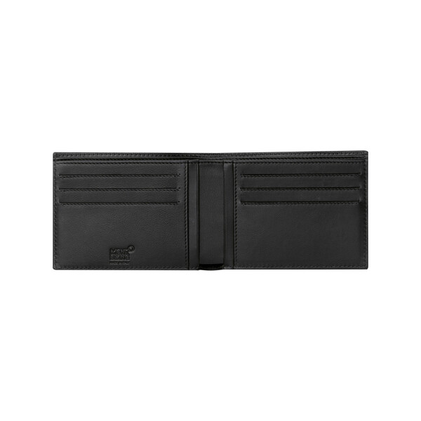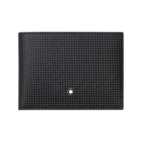 Портмоне 6 сс, изготовленное из кожи с текстурой плетеных углеродных волокон, подкладка из хлопка, эмблема Montblanc из рутениевого напыления.