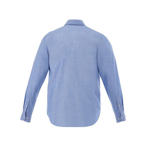 Рубашка Lucky. Универсальный покрой. Регулируемый манжет на одной пуговице. Пуговицы Slazenger. Контрастные детали строчки. Плоские швы. Контрастный цвет внутри воротника. 60% хлопок, 40% полиэстер, окрашенная пряжа, плетение поплин. 125 г/м2.Вы можете купить из наличия рубашку "Lucky" мужская, светло-синюю с вашим логотипом прямо сейчас, оформив доставку курьером