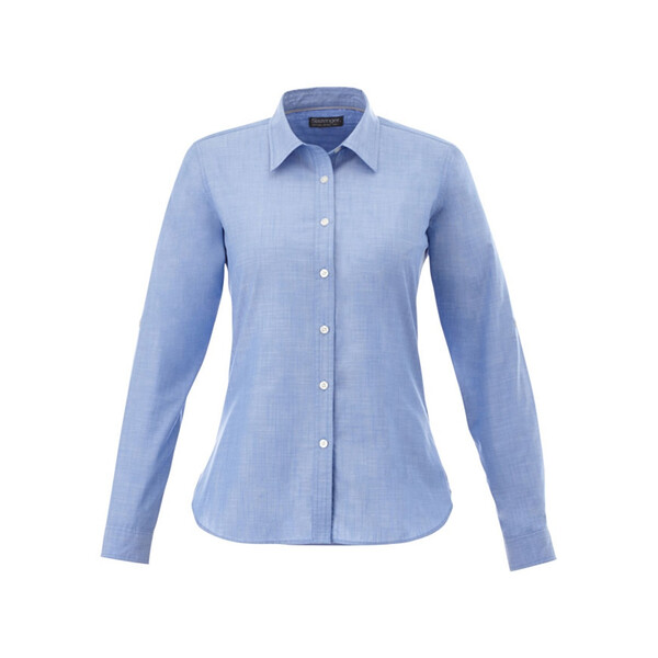Рубашка Lucky. Универсальный покрой. Регулируемый манжет на одной пуговице. Пуговицы Slazenger. Контрастные детали строчки. Плоские швы. Контрастный цвет внутри воротника. 60% хлопок, 40% полиэстер, окрашенная пряжа, плетение поплин. 125 г/м2.Вы можете купить по низким ценам рубашку "Lucky" женская, светло-синюю с нанесением прямо сейчас, заказав быструю доставку