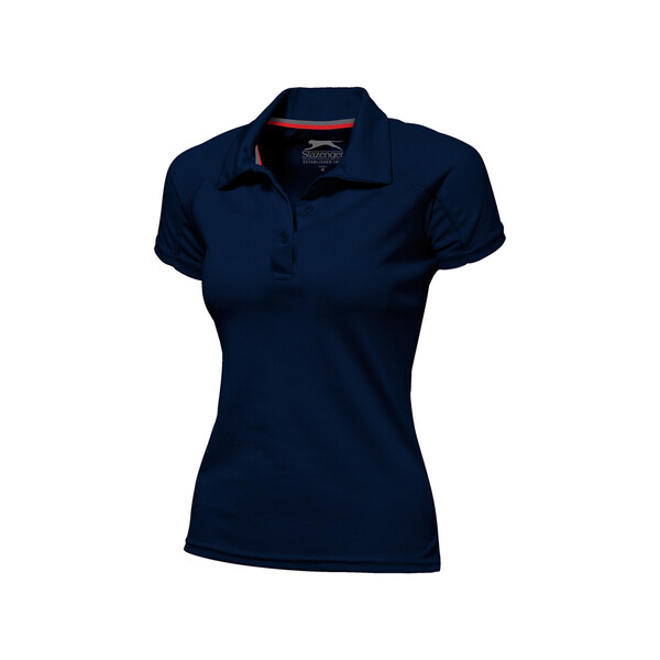 Женская рубашка поло с короткими рукавами Game. Прилегающий покрой. Воротник из ткани изделия. Рукава реглан, плоская строчка. Пуговицы с гравировкой. Двухцветная лента внутри на горловине. Принт Slazenger сзади. Сетчатый материал, 100% полиэстер с дышащей поверхностью. 125 г/м².Вы можете купить из наличия рубашку поло "Game" женская, тёмно-синюю с вашим логотипом прямо сейчас, купив быструю доставку