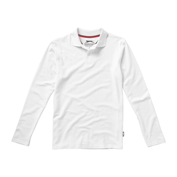 Рубашка поло с длинными рукавами Point. Прилегающий покрой. Воротник 1х1. Пуговицы с гравировкой. Двухцветная лента внутри на горловине. Лейба-флажок сбоку. Пике, 100% чесаный хлопок. 180 г/м².Вы можете купить из наличия рубашку поло "Point" мужскую с длинным рукавом, белую с нанесением прямо сейчас, оформив быструю доставку
