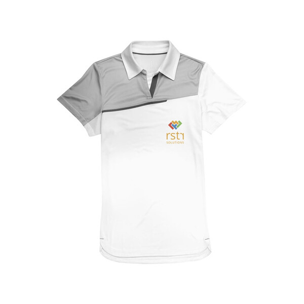 Женская рубашка поло с короткими рукавами Prater. Универсальный покрой. Воротник из ткани изделия. Запатентованный дизайн боковых панелей. Горловина V-образная, с планкой без пуговиц. Боковые разрезы. Двухластичный трикотаж, 100% микрополиэстер с дышащей поверхностью. 155 г/м2.Вы можете купить из наличия рубашку поло "Prater" женская, белый/светло-серую с вашим логотипом прямо сейчас, заказав доставку курьером
