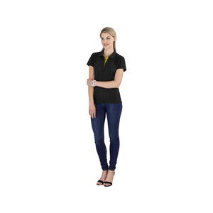 Рубашка-поло Solo изготовлена из полиэстера (65%) и хлопка (35%). Модель универсальная - в ней можно ходить в офис и заниматься спортом. Главная особенность в том, что сама рубашка черного цвета, а воротник отделан тканью разных ярких цветов. На поло можно нанести изображение по вашему эскизу. Рубашка-поло Solo прекрасно подойдет для создания униформы или в качестве промо-сувенира. Пуговицы с гравировкой в тон - мужская модель с тремя пуговицами, а женская с четырьмя. Женская модель приталенная. Плотность - 180 г/м2.Вы можете купить по низким ценам рубашку поло "Solo" женская, жёлтую с нанесением прямо сейчас, купив доставку курьером