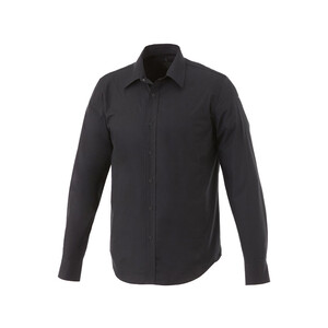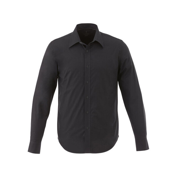 Рубашка с длинными рукавами Hamell. Скрытая пуговица под воротником. Стрейч-ткань. Регулируемый манжет на одной пуговице. Атласная окантовка внутренней части горловины. Гравированные пуговицы в цвет изделия. Комфортный ярлык-трансфер на изделии. Поплин из 96% хлопка и 4% эластана. 118 г/м².Вы можете купить по низким ценам рубашку с длинными рукавами Hamell, чёрную с вашим логотипом прямо сейчас, оформив быструю доставку