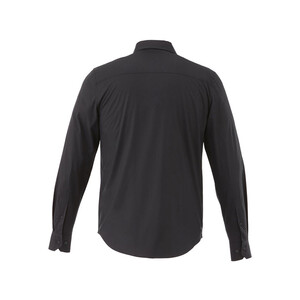 Рубашка с длинными рукавами Hamell. Скрытая пуговица под воротником. Стрейч-ткань. Регулируемый манжет на одной пуговице. Атласная окантовка внутренней части горловины. Гравированные пуговицы в цвет изделия. Комфортный ярлык-трансфер на изделии. Поплин из 96% хлопка и 4% эластана. 118 г/м².Вы можете купить из наличия рубашку с длинными рукавами Hamell, чёрную с вашим логотипом прямо сейчас, купив быструю доставку