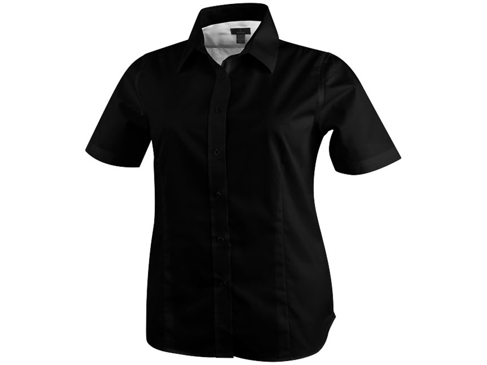 Женская рубашка с короткими рукавами Stirling. Универсальный покрой. Мужская модель с пуговицами на воротнике. Однотонные пуговицы. Приталенная модель и формовые швы (женская модель).Плоские швы. Контрастная отделка швов спереди на плечах.Вы можете купить из наличия рубашку "Stirling" женскую с коротким рукавом, чёрную с вашим логотипом прямо сейчас, оформив доставку курьером