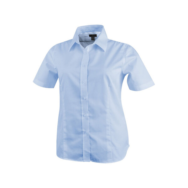 Женская рубашка с короткими рукавами Stirling. Универсальный покрой. Однотонные пуговицы. Приталенная модель и формовые швы (женская модель). Плоские швы. Саржа с 65% полиэстера и 35% хлопка.Вы можете купить из наличия рубашку "Stirling" женскую с коротким рукавом, синюю с нанесением прямо сейчас, оформив быструю доставку