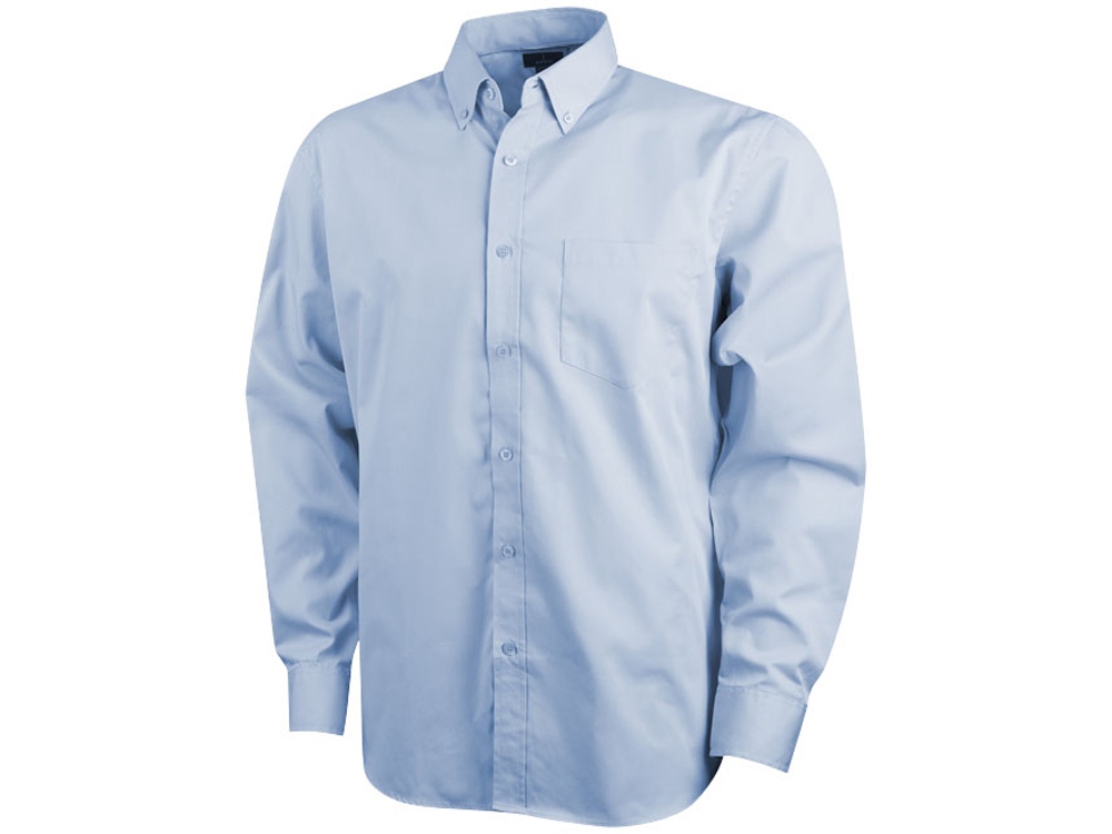 Рубашка с длинными рукавами Wilshire. Универсальный покрой. Регулируемый манжет на одной пуговице. Однотонные пуговицы. Плоские швы. Нагрудный карман (мужская модель). Саржа с 65% полиэстера и 35% хлопка.Вы можете купить по низким ценам рубашку "Wilshire" мужскую с длинным рукавом, синюю с вашим логотипом прямо сейчас, оформив доставку курьером