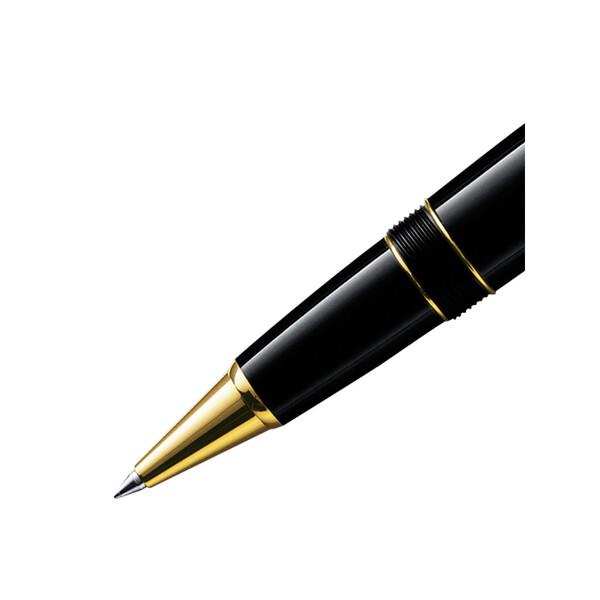 Модель Meisterstück LeGrand из драгоценной смолы насыщенного черного цвета, оформленная деталями с золотым напылением и белой эмблемой Montblanc, стала образцом культового дизайна Montblanc.