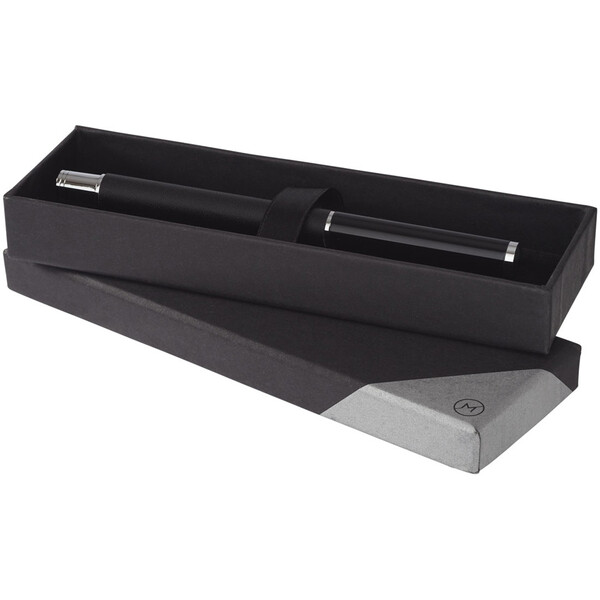 Ручка роллер Pedova. Ручка роллер в эксклюзивном дизайне. Нижняя часть корпуса выполнена с элементом кожи ПУ, матовая верхняя часть корпуса и хромированные акценты. Черный стержень роллер. Упакована в подарочную коробку Marksman® для двух принадлежностей. Металл.Вы можете купить по низким ценам ручку роллер Pedova с нанесением прямо сейчас, купив доставку курьером