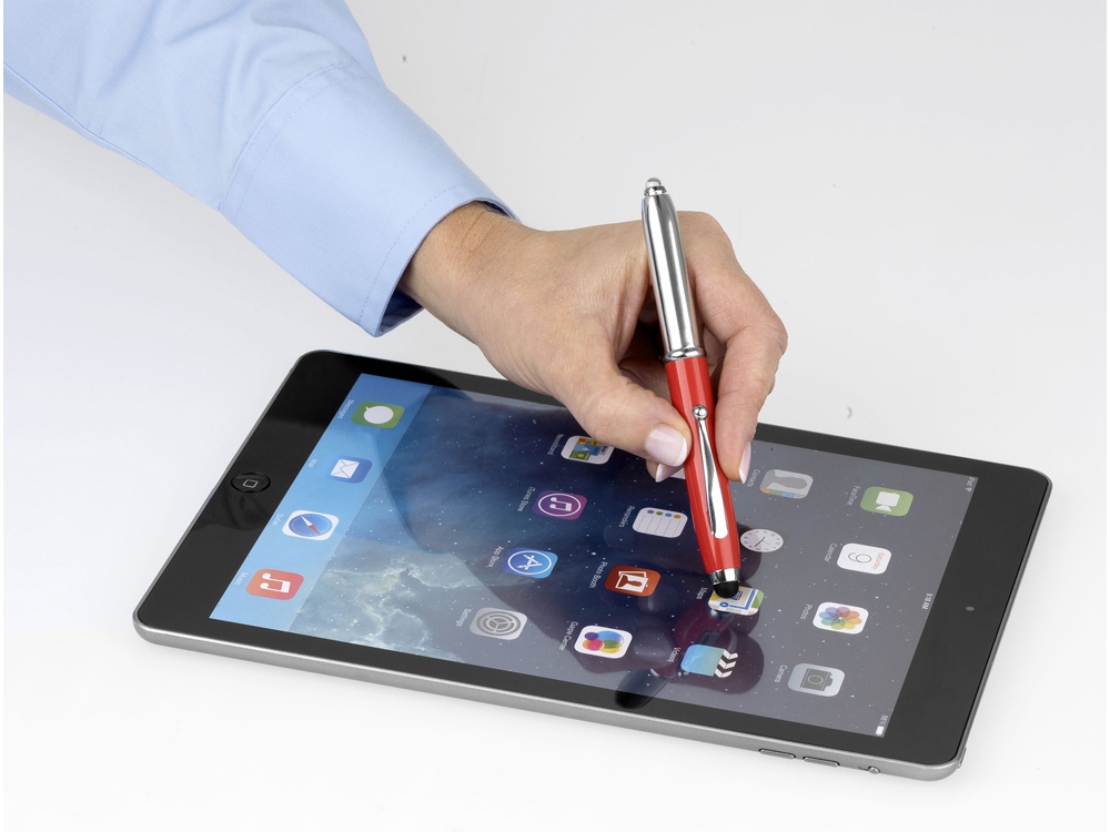Шариковая ручка-стилус Xenon. Шариковая ручка-стилус с одинарным диодным фонариком и съемным колпачком. Батарейки в комплекте. Алюминий.Вы можете купить по низким ценам ручку-стилус шариковую "Xenon", красный, чёрную чернила с вашим логотипом прямо сейчас, заказав доставку курьером