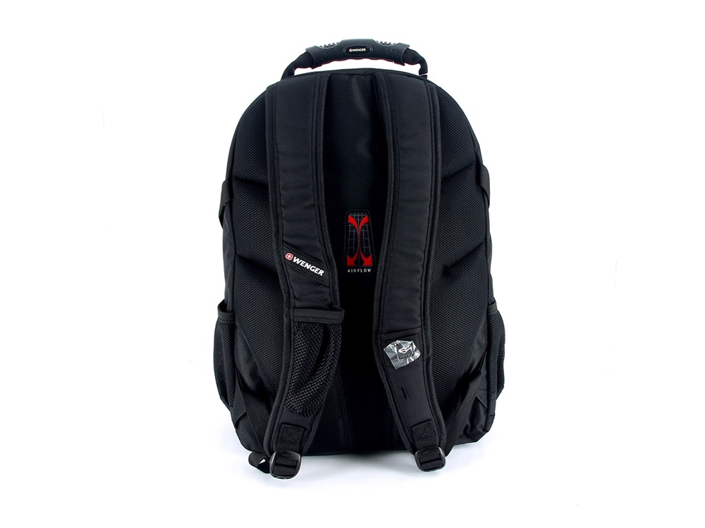 Рюкзак включает в себя: -отделение с мягкими стенками для ноутбука с диагональю экрана 15”, -большое отделение для вещей с отверстием для наушников, -карман-органайзер для мелких вещей с отделением для телефона, пишущих принадлежностей, ключей и пр., -два кармана для быстрого доступа, -два боковых кармана для бутылок или зонта выполненные из специальной двойной эластичной сетки, -спинка рюкзака имеет специальную рельефно-анатомическую поверхность и оснащена системой циркуляции воздуха AirFlow, -ручка оснащена прочным кожухом для удобства переноски, -регулируемые эластичные плечевые ремни анатомической формы с пропускающей воздух подкладкой, с кармашком и петлей для очков, стягивающие боковые ремни для уменьшения объема.Вы можете купить по низким ценам рюкзак 32л с отделением для ноутбука 15''. Wenger, черный/серый с нанесением прямо сейчас, купив доставку курьером