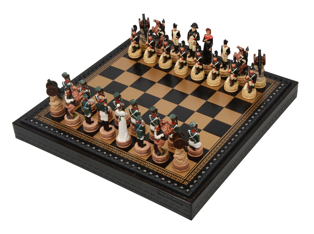 Вы можете купить по низким ценам шахматы Бородино, чёрные с нанесением прямо сейчас, заказав доставку курьером