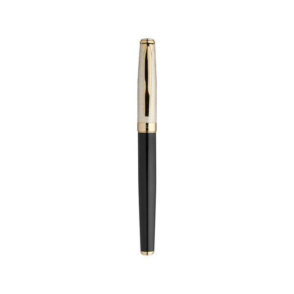 Шариковая ручка Doré. Роскошная шариковая ручка с золотистым кожаным колпачком и лакированными золотистыми элементами. Ручка упакована в эксклюзивную подарочную упаковку LUXE. Металл.Вы можете купить из наличия шариковую ручку Doré, черный/золотистую с нанесением прямо сейчас, оформив быструю доставку