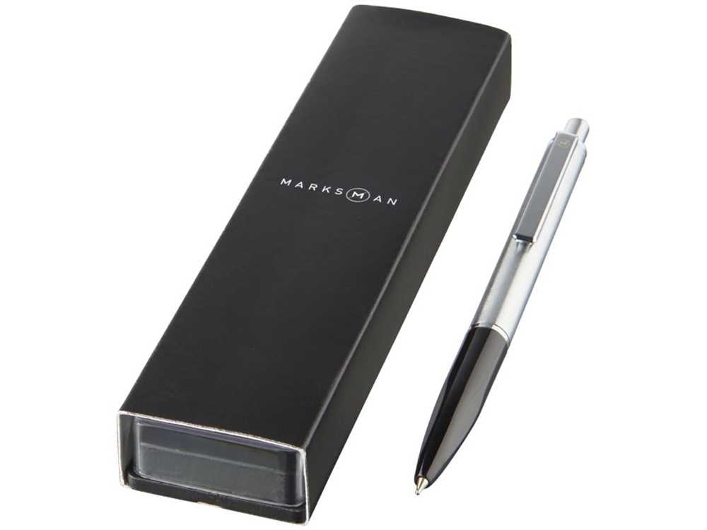 Шариковая ручка Dot - синие чернила. Шариковая ручка с кнопочным механизмом с комфортным держателем. Упакована в коробку Marksman. Металл и пластик АБС.Вы можете купить из наличия шариковую ручку «Dot», черный, чёрную чернила с вашим логотипом прямо сейчас, оформив быструю доставку