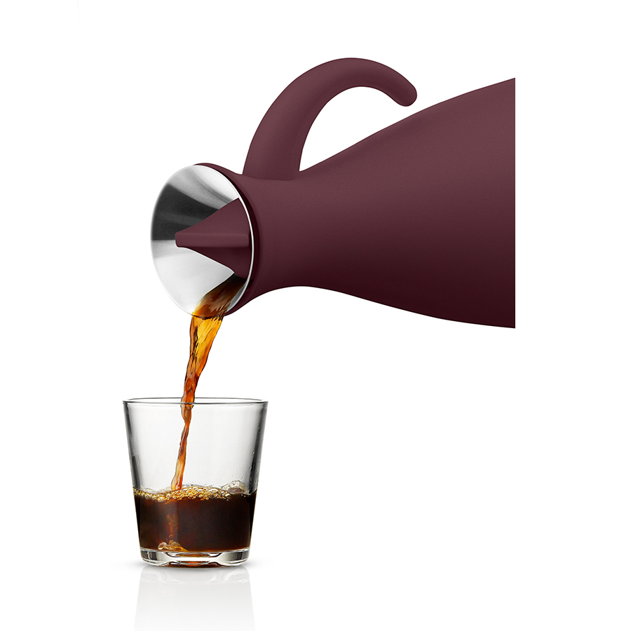 Прекрасное решение для сервировки горячих и холодных напитков. Стильный матовый термокувшин оснащён специальным горлышком с системой dip-free, предотвращающей расплёскивание при наливании. Внутренняя стеклянная колба и двойные стенки кувшина сохраняют постоянную температуру внутри очень долгое время. Центр тяжести смещён вниз, что делает кувшин устойчивым несмотря на его высоту. При необходимости, колбу можно заменить. Благодаря широкому горлышку внутрь удобно заливать жидкость и мыть колбу. Элегантный дизайн этого кувшина собрал множество наград, что подтверждает его исключительность. Отличный вариант подарка.Вы можете купить по низким ценам термокувшин vacuum 1 л высокий бургунди с нанесением прямо сейчас, купив доставку курьером