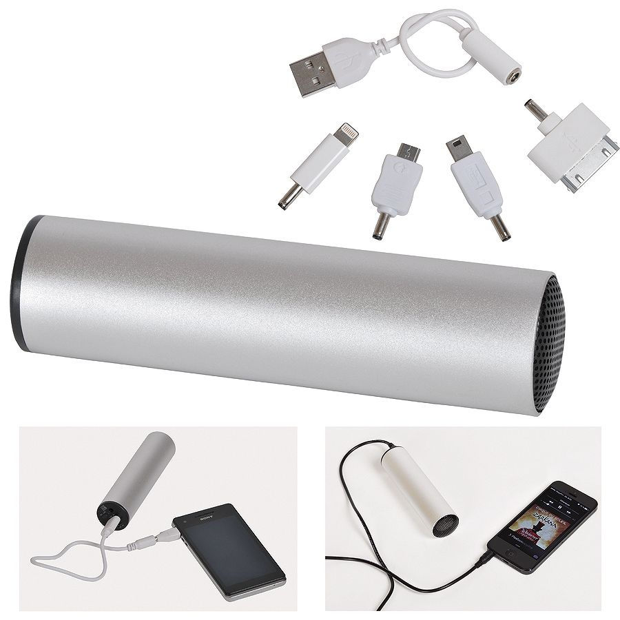 Универсальное зарядное устройство "Soundcheck" (2200mA) с динамикомВы можете купить по низким ценам универсальное зарядное устройство "Soundcheck" (2200mA) с динамиком,L=12,5см,D=3,3см,металл,пластик с нанесением прямо сейчас, оформив доставку курьером