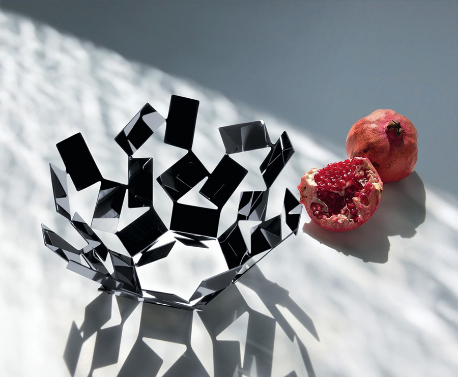 Великолепная ваза для фруктов из обширной серии предметов для гостиной и кухни La Stanza dello Scirocco. На создание коллекции архитектора и дизайнера Марио Тримарки вдохновили традиционные комнаты «сирокко», которые можно повстречать в богатых сицилийских домах. Эти небольшие помещения без окон предназначены для укрытия в случае сильного средиземноморского ветра. Шум мощных порывов, философские размышления о жизни и игра теней на стене — такова атмосфера этих комнат, в которых люди бывают вынуждены проводить в бездействии долгое время. Тонкие пластины, которые образуют ассиметричные формы коллекции, кажутся как будто закрученными в воздухе ветряным вихрем. При первом взгляде на блюдо даже может показаться, словно отдельные его части никак не закреплены между собой: еще чуть-чуть — и оно разлетится в разные стороны! Детали: -Материал: окрашенная нержавеющая сталь -Диаметр: 27,3 см. -Дизайн: Mario Trimarchi