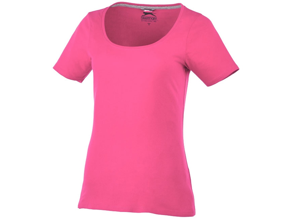 Женская футболка с короткими рукавами Bosey. Боковые швы. Лента от плеча к плечу. Двойная строчка на воротнике и внизу изделия. Петелька-вешалка контрастного цвета. Комфортный ярлык-трансфер на изделии. Однослойная джерси, 100% хлопок. 140 г/м².Вы можете купить по низким ценам женскую футболку с короткими рукавами Bosey, розовую с вашим логотипом прямо сейчас, заказав быструю доставку