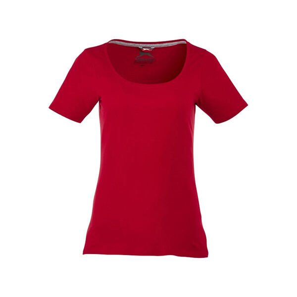 Женская футболка с короткими рукавами Bosey. Боковые швы. Лента от плеча к плечу. Двойная строчка на воротнике и внизу изделия. Петелька-вешалка контрастного цвета. Комфортный ярлык-трансфер на изделии. Однослойная джерси, 100% хлопок. 140 г/м².Вы можете купить из наличия женскую футболку с короткими рукавами Bosey, тёмно-красную с вашим логотипом прямо сейчас, заказав доставку курьером