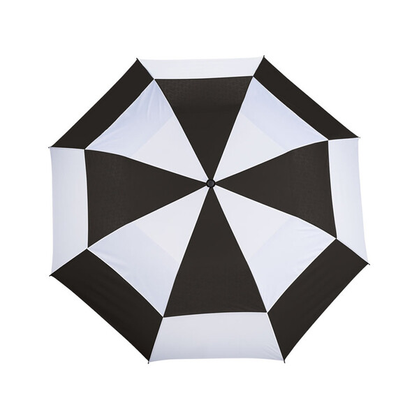 Зонт двухсекционный Norwich с автоматическим открытием, 30". Двухсекционный складной зонт с автоматическим открытием. Вентилируемая конструкция регулирует давление во время сильных порывов ветра. Четыре верхних панели с тонким спортивным брендингом Slazenger™. В комплекте чехол с ремешком на плечо. Складывается до 56 см. Эпонж полиэстер.Вы можете купить по низким ценам зонт двухсекционный Norwich с автоматическим открытием, 30", чёрный с нанесением прямо сейчас, оформив быструю доставку