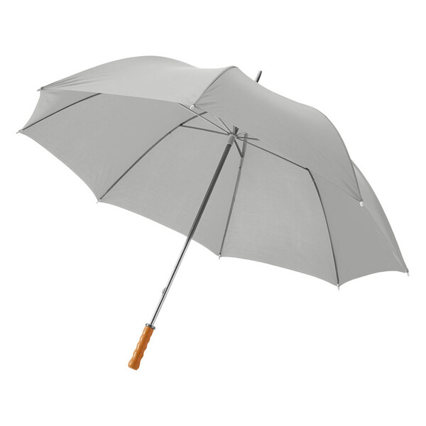 Зонт Karl 30". Зонт 30" с металлическими спицами и корпусом и деревянной ручкой. Полиэстер.Вы можете купить из наличия зонт Karl 30" механический, светло-серый с нанесением прямо сейчас, заказав быструю доставку
