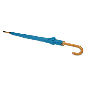 Полуавтоматический зонт-трость с деревянной ручкой выполнен из качественных материалов и устойчив к сильным порывам ветра. Яркие, сочные цвета в ассортименте. Материал позволяет нанести нужную информацию методом термотрансфера и гравировки.