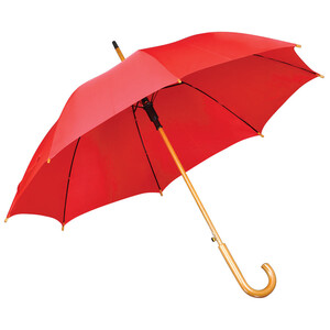 Отзывы на товар: Зонт-трость с деревянной ручкой, полуавтомат; красный; D=103 см, L=90см; нейлон; шелкография