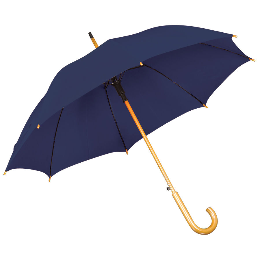 Отзывы на товар: Зонт-трость с деревянной ручкой, полуавтомат; синий; D=103 см, L=90см; нейлон; шелкография